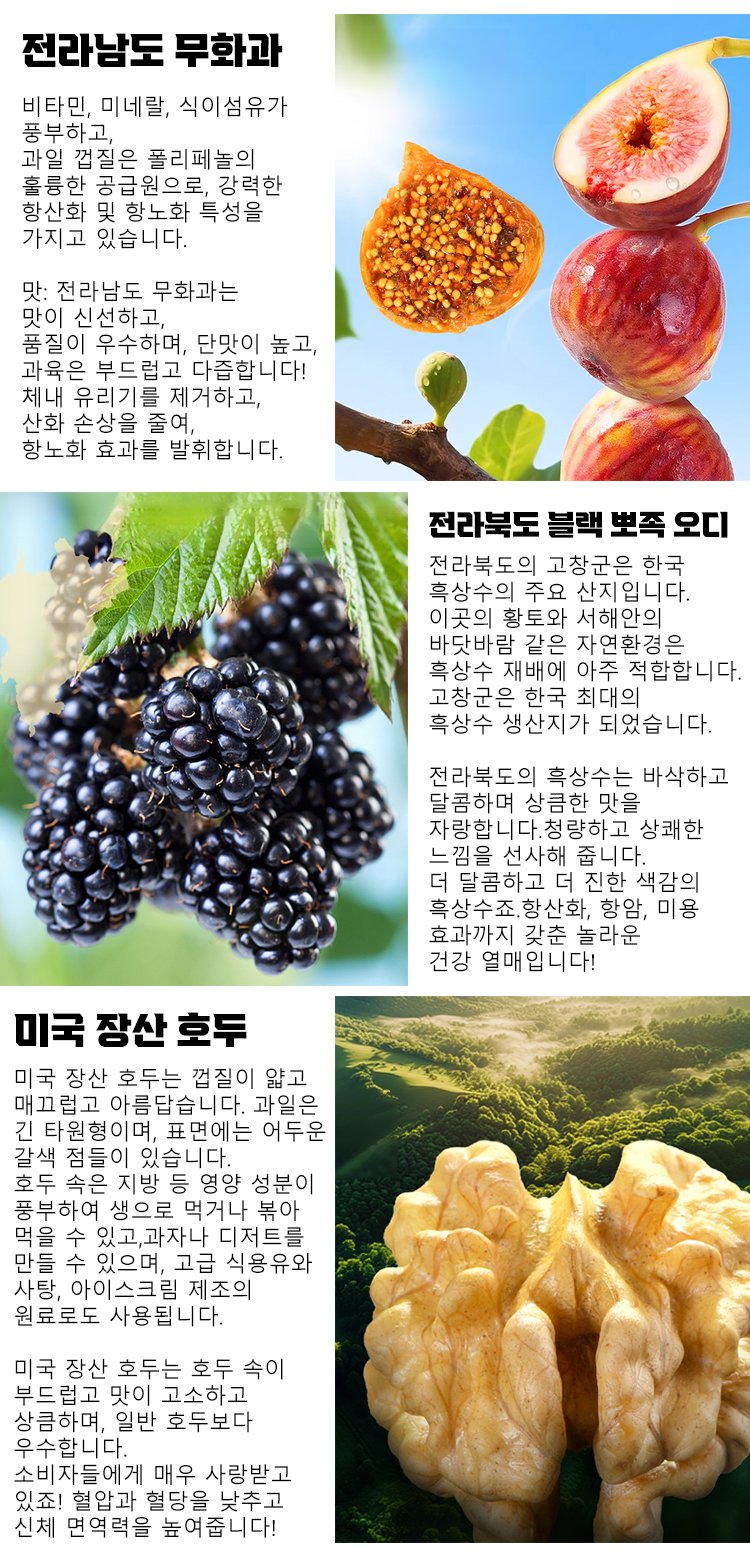 모든 원재료는 전라남도 햇살 농장에서 당일 수확, 당일 가공하며, 식품안전처가 전 과정에서 감독하여, 0당 0첨가로 자연 건강을 보장합니다!